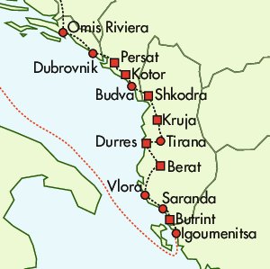 Diese unvergessliche Rundreise führt uns von Griechenland entlang der Südküste sowie durch das Landesinnere von Albanien, weiter durch Montenegro und zurück über die Dalmatinische Küste. Eine Fülle an repräsentativen Museen und architektonisch einzigartigen Bauwerken zeugt von der bewegten Geschichte dieser Region. Es gibt eine Vielzahl von archäologischen Fundstätten, von mittelalterlichen Plätzen und natürlich modernen Städten. Die Geschichte Albaniens geht weit in die Vergangenheit zurück - schon vor 100.000 Jahren war das Gebiet besiedelt und jede Epoche hat ihre Spuren hinterlassen. Wir tauchen ein in das Land der Skipetaren, das in der Vergangenheit Südosteuropas eine bedeutende Rolle spielte, dann lange in Vergessenheit geriet und heute wieder den Anschluss an Europa sucht und findet.
