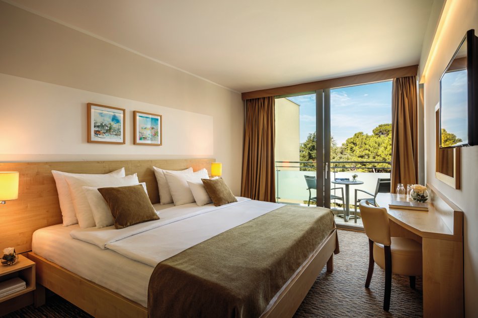 Unser schönes Valamar Hotel Parentino ist nur wenige Meter vom Meer und ca. 15 Gehminuten von der Altstadt entfernt. Alle eleganten Zimmer verfügen über Bad/WC, Föhn, Sat-TV, Telefon, Safe, Klimaanlage und Balkon. Im Hotelrestaurant wird ein abwechslungsreiches Buffet zum Frühstück und Abendessen geboten. Für den Badespaß bietet das Hotel zwei Außenpools oder genießen Sie die Zeit am wunderschönen Kiesstrand Val Parentino (Liege und Sonnenschirm gegen Gebühr). Der Strand bietet Schatten unter den Kiefern und einen herrlichen Blick auf die Altstadt von Poreč ebenso wie zahlreiche Sport-, Unterhaltungs- und Gourmetangebote. Gegen Gebühr können Sie im Hotel auch Massagen, Gesichts- und Körperbehandlungen sowie einen Saunaeintritt buchen.