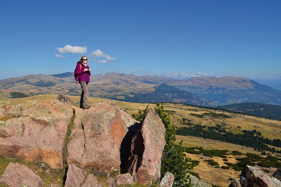 Heute erwartet uns ein herrlicher Wandertag im Gebiet von Meran 2000. Ausgangspunkt ist Falzeben oberhalb von Hafling, wo uns bereits ein traumhaftes Panorama auf die umliegenden Berge empfängt. In angenehmer Steigung führt uns der Weg durch blühende Almwiesen und lichte Lärchenhaine hinauf zu den sonnigen Hochflächen. Besonders lohnend ist der Blick von der Kirchsteiger Alm, die auf einer weiten Hochfläche liegt und mit einem Rundumblick auf Ortlergruppe, Texelgruppe und Dolomiten beeindruckt. Über einen leichten Panoramaweg kehren wir zurück nach Falzeben, wo unser Bus bereits auf uns wartet.