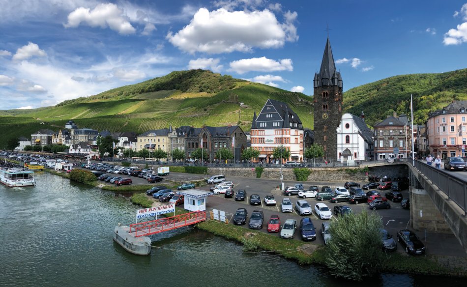 Heute führt uns die Reise entlang der malerischen Mosel. Zwischen Koblenz und Trier schlängelt sich der Fluss durch das Schiefergebirge - rechts die Eifel, links der Hunsrück - tief eingebettet zwischen steilen Hängen, die mit einigen der besten Weinlagen der Welt bedeckt sind. Die Landschaft wechselt ständig ihr Gesicht: Mal wirkt das Moseltal wie eine schimmernde Seenplatte, mal beeindruckt es mit weiten Flussschleifen, die wie perfekte blaue Bögen zwischen den grünen Weinbergen liegen. Entlang der Mosel begegnen wir idyllischen Orten wie Cochem, Traben-Trarbach und Bernkastel-Kues, das mit seinen verwinkelten Gassen und prächtigen Fachwerkhäusern bezaubert. Am Abend erreichen wir Trier, die älteste Stadt Deutschlands und ein Zentrum des Moselweins, wo wir unser Hotel nahe der berühmten Porta Nigra beziehen.