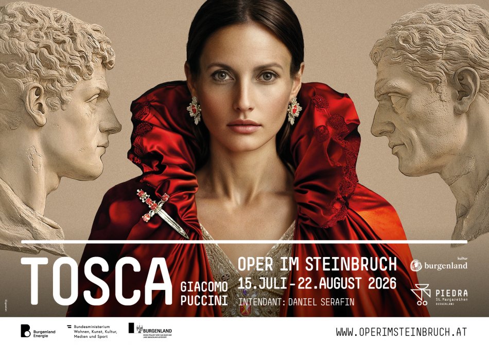 Mit Giacomo Puccinis Meisterwerk „Tosca“ kehrt 2026 eine der beliebtesten Opern der Welt auf die Freiluftbühne des Steinbruchs St. Margarethen zurück. Die dramatische Geschichte um Liebe, Eifersucht und Macht spielt im Rom des Jahres 1800: Die Sängerin Floria Tosca und der Maler Mario Cavaradossi geraten in die Intrigen des skrupellosen Polizeichefs Scarpia. Puccinis mitreißende Musik – von „Recondita armonia“ bis „Vissi d’arte“ – macht diesen Opernabend zu einem unvergesslichen Erlebnis in der einzigartigen Felskulisse des Steinbruchs.