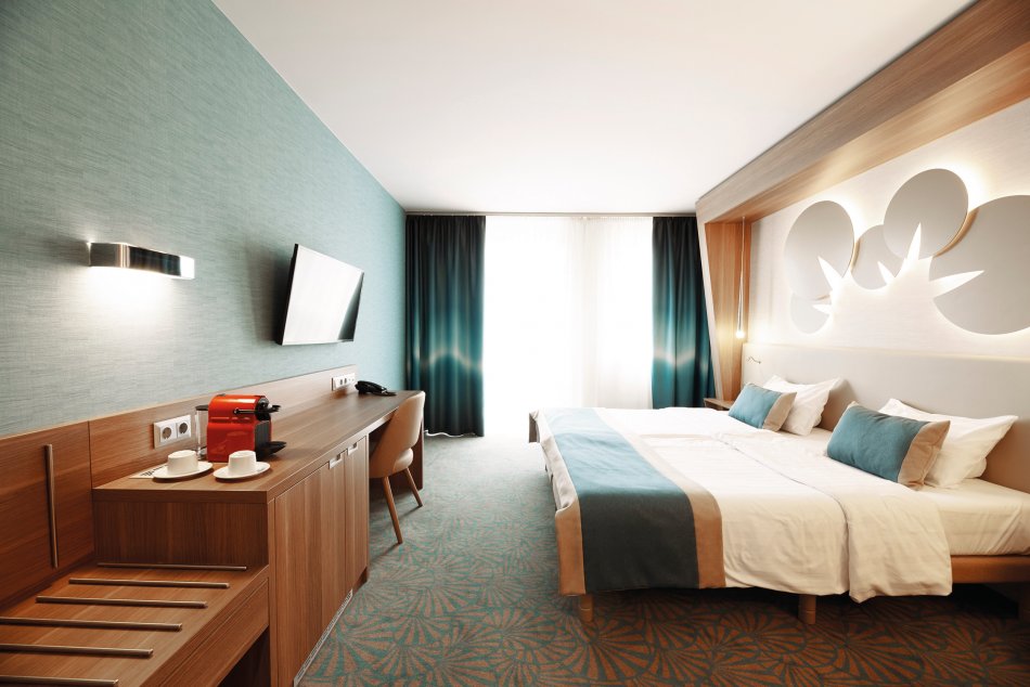 Das neu erbaute Hotel heißt Sie mitten im Herzen des Thermalortes willkommen. Tauchen Sie ein in eine magische Welt, inspiriert von der malerischen Landschaft von Hévíz, wo Natur und Eleganz eine harmonische Verbindung eingehen. Die luxuriösen Premium Urban Zimmer verfügen über Bad/WC, Föhn, Sat-TV, Telefon, Minibar, Safe, Balkon und kostenloses WLAN.