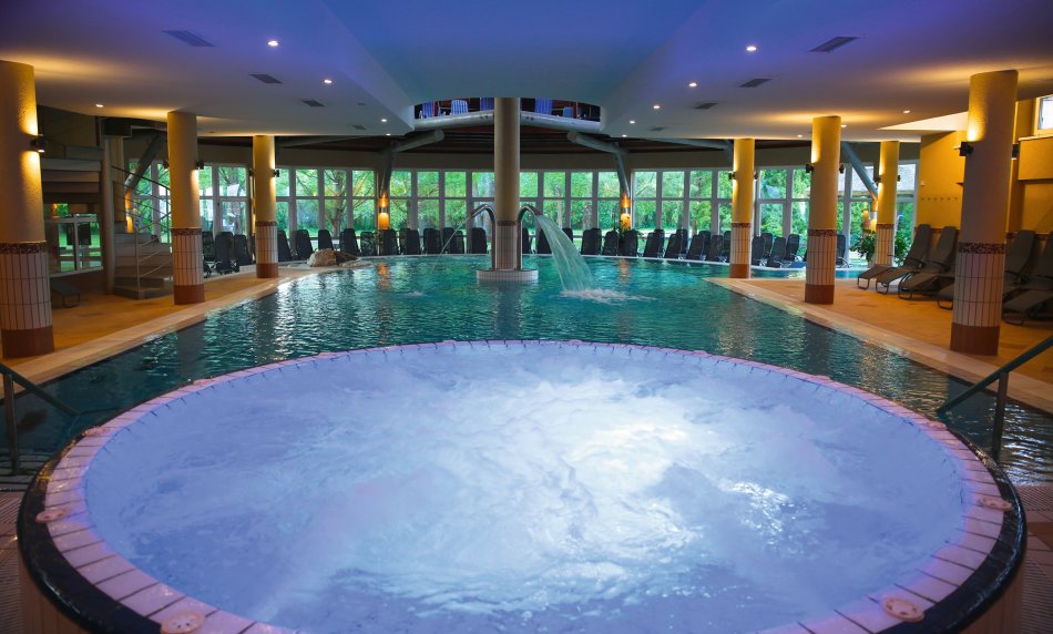 Spa „Lotus Therme“ mit großzügiger Bade- und Saunalandschaft mit Innen- und Außenpool (20 x 10 m), Jacuzzi, Therme mit Thermalbad, Heilwasserbecken, Relaxbad mit Panoramafenster, Whirlpool, Infrarotkabinen, Gartensauna, finnische Sauna mit inszenierten Aufgüssen, Erlebnisduschen, Aroma-Lichtsauna, Laconium, Caldarium, Kneippgang, Sonnenterrasse mit Liegen inklusive. Gegen Gebühr: Rasulbad mit Hévízer Schlamm, Ayurveda, Lomi Lomi Nui, fernöstliche Massagen, klassische Hevizer Heilanwendungen (Hevizer Schlamm, medizinische Massagen, usw.), Beauty Spa Center mit Haarstudio, Crémebar, Solarium.